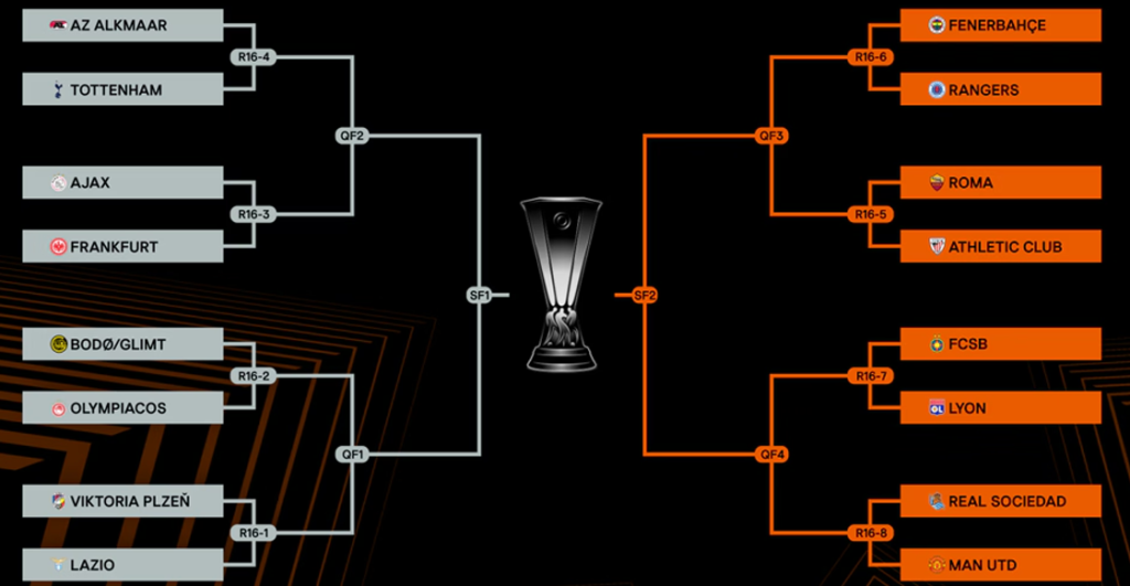 Una vez que tengamos a todos los clasificados, los Cuartos de Final de la Europa League se jugarán, también a ida y vuelta, el 10 de abril del 2025.